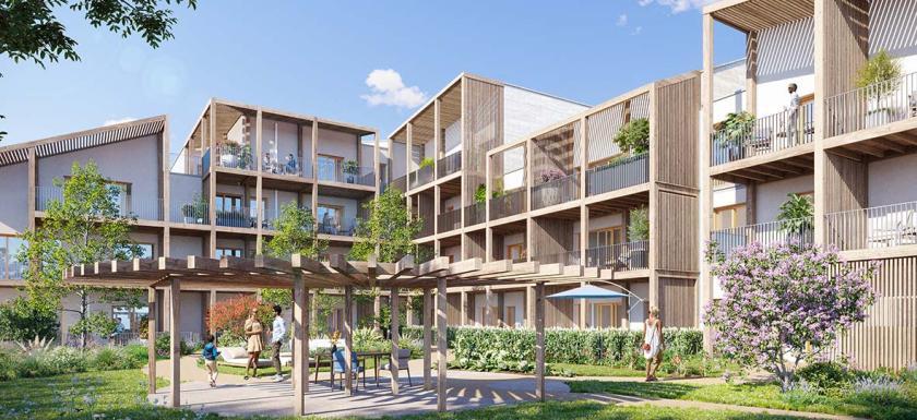 La résidence s’inscrit dans notre démarche logement Cœur de Vie afin de s’adapter aux modes de vie de chacun. Ainsi, elle intègre une chaufferie collective équipée d’une pompe à chaleur réversible pour un confort optimal en toutes saisons et permet la modularité de ses logements pour un habitat plus durable, plus confortable et configurable. Un cœur d’îlot paysager conçu par un écologue, offrira aux habitants, 850m² d’espaces végétalisés, incluant un jardin partagé, des potagers et un espace de compost collectif.